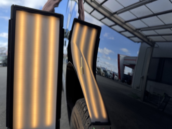 ミツビシ デリカD5 デントリペア【南相馬市】 2026年4月25日 こんにちは、デントリペア・ナガの長正です。今回は、南相馬市の自動車販売業様より、ミツビシ デリカD5のデントリペア(凹み修理)をご依頼を頂きました。今回のヘコミは、左リアフェンダーに出来たヘコミになります。早速、作業に取り掛かります。 デントリペア施工前 デントリペア施工後 施工後は凹みも直り自動車販売業様に、喜んでいただきました。お車に気になるヘコミ有りましたらお気軽にお問い合わせください。 ご依頼頂きまして、ありがとうございました。